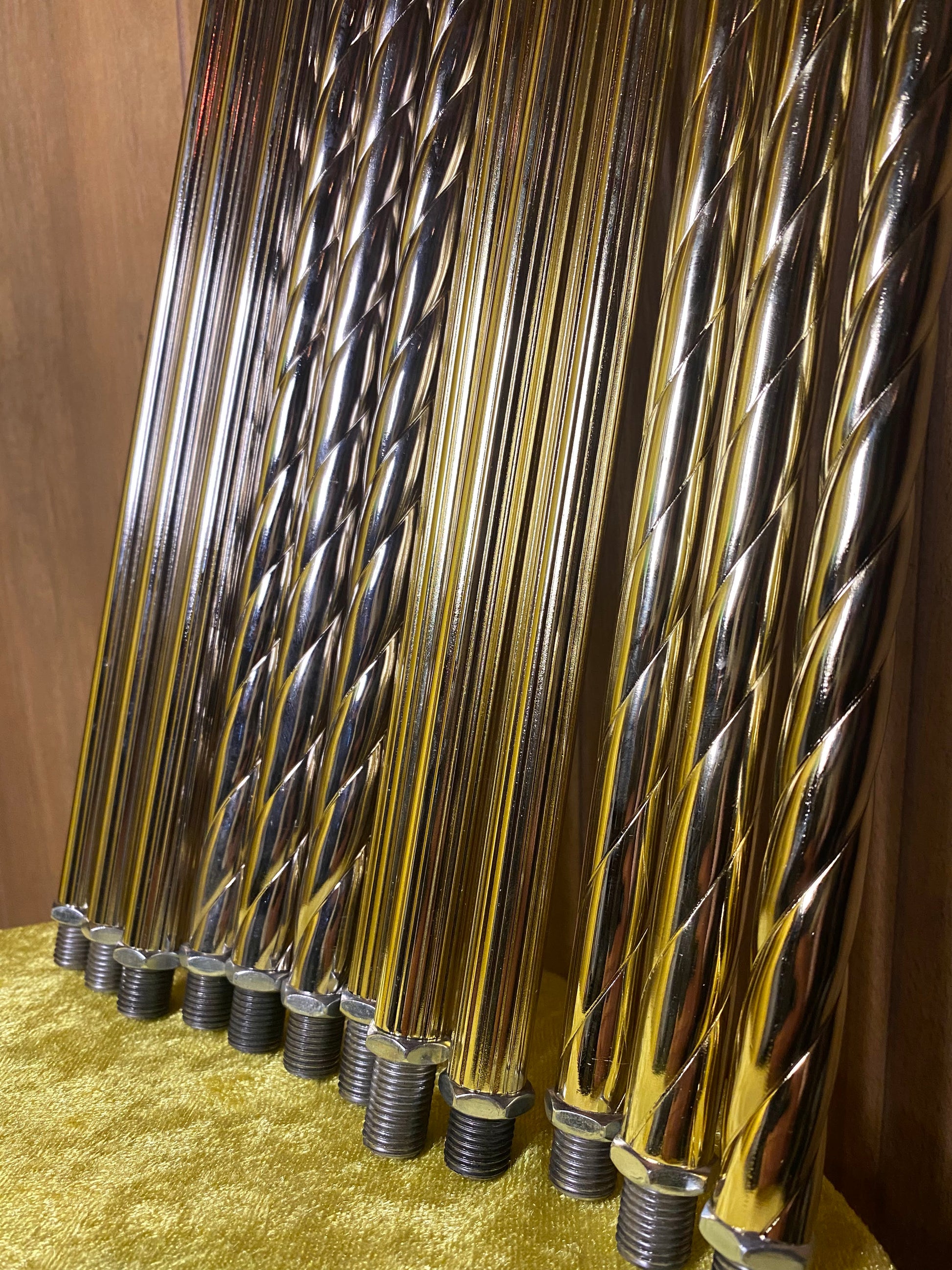 Restore your rain lamp with three solid steel columns, available in roped or fluted designs and gold or silver finishes. Mounting hardware included.